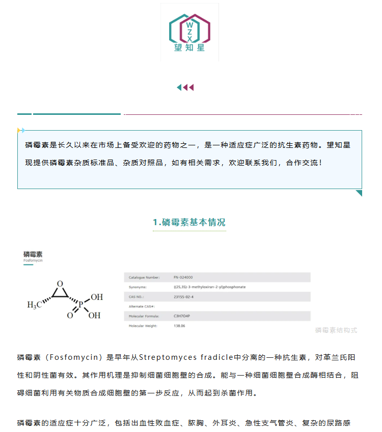 望知星產品推廣:磷霉素及相關雜質對照品