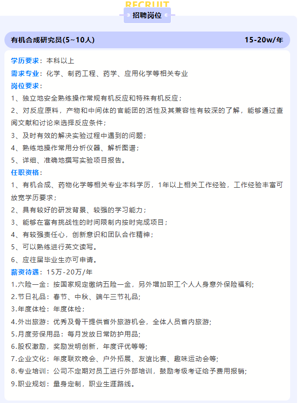 南京望知星醫(yī)藥科技有限公司是一家以研發(fā)藥品注冊過程中所涉及的雜質(zhì)對照品為核心,提供雜質(zhì)對照品定制合成、制備分離及藥品注冊過程中雜質(zhì)研究總體解決方案的服務(wù)型企業(yè)。核心團隊由奮斗在藥品注冊、藥物合成一線10余年的科學(xué)家組成,精通國內(nèi)藥品注冊法規(guī)及技術(shù)要求。自成立以來,我們一直注重研發(fā)領(lǐng)域的效率和創(chuàng)新,而雜質(zhì)研發(fā)作為我們的核心領(lǐng)域,我們歡迎新人的加入,一起為雜質(zhì)領(lǐng)域的事業(yè)而奮斗!